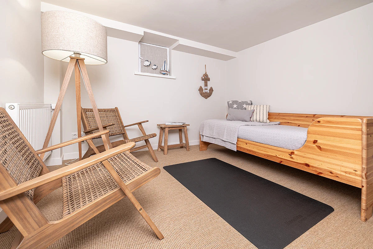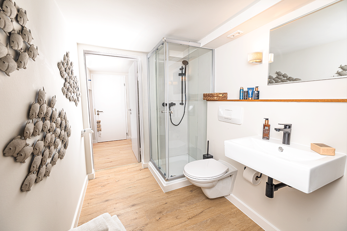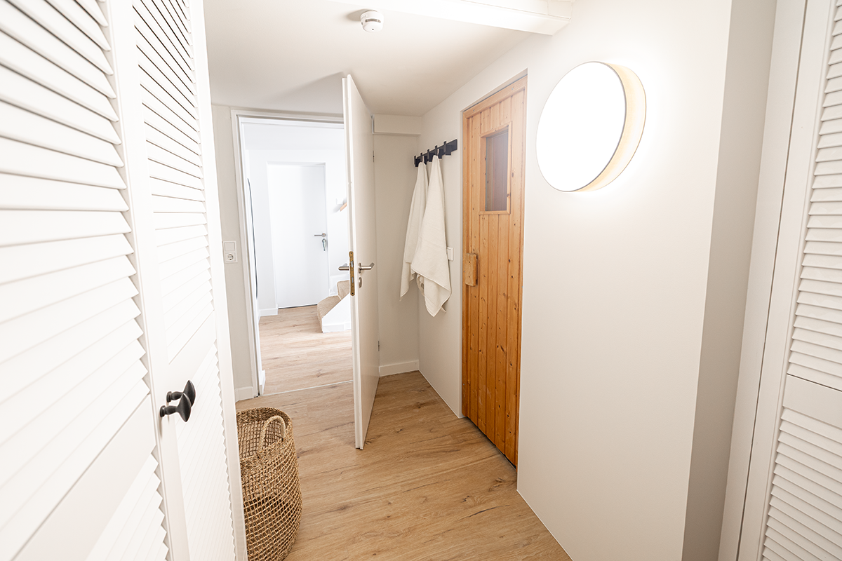 Als besonderes Highlight erwartet Sie in dieser Wohnung eine eigene Sauna, ergänzt durch eine sonnige Terrasse sowie einen separaten Yoga-Bereich. Hier genießen Sie wohltuende Entspannung, ruhige Auszeiten und bewusste Momente ganz für sich – perfekt nach einem Tag an der frischen Nordseeluft.